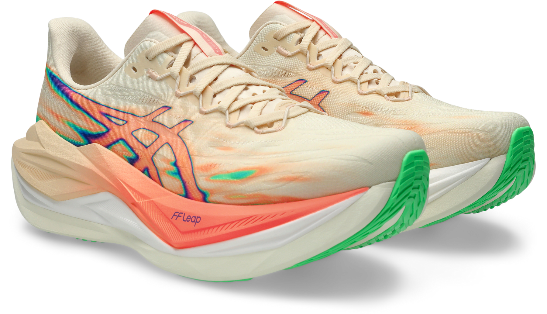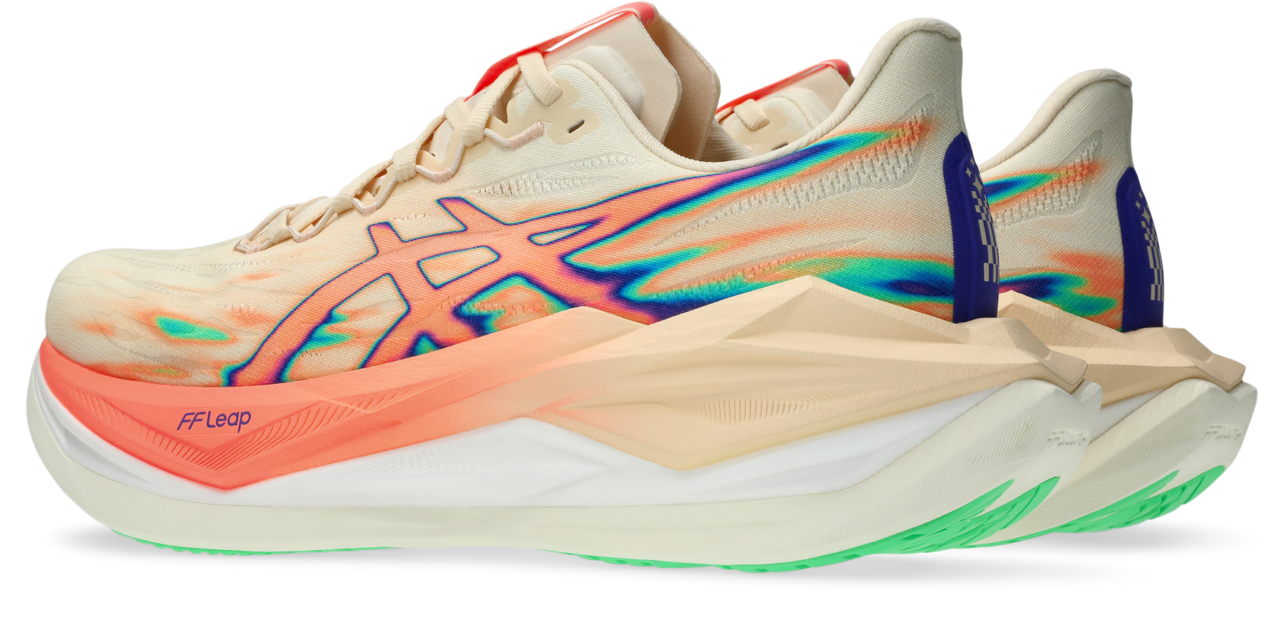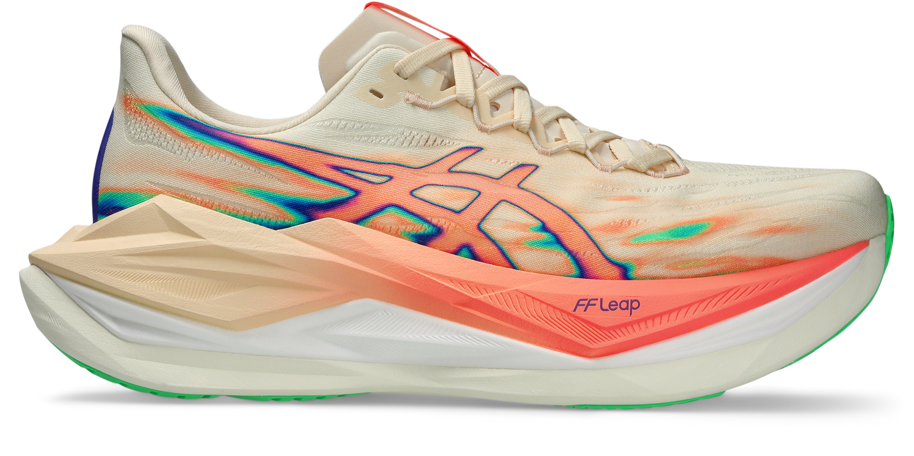 The midsole has been updated with FF LEAP cushioning. This foam composition is influenced by our METASPEED racing models. Its lightweight formulation is met with bouncy properties that are functional for everyday running.